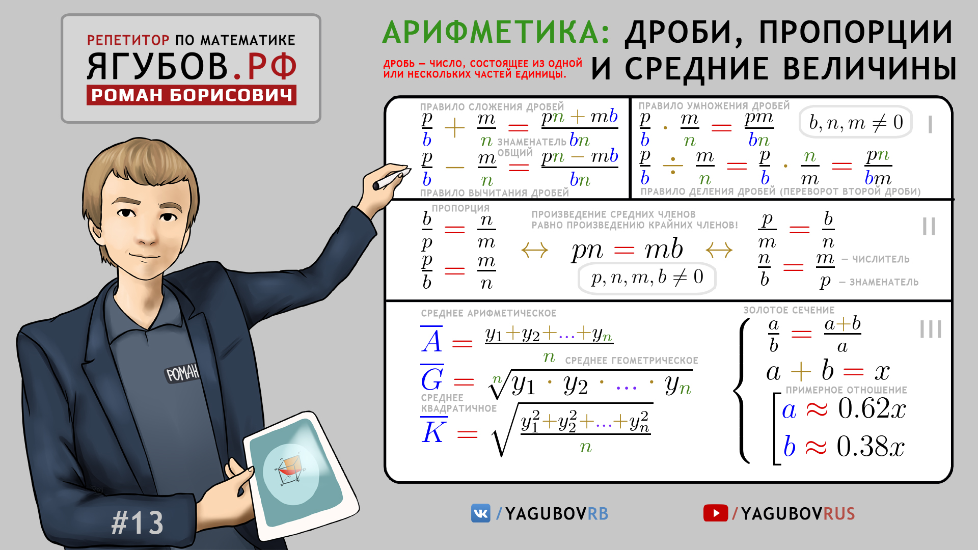 Методическое пособие по Дробям, пропорциям и средним величинам от Ягубов Р.Б. 2017-го года