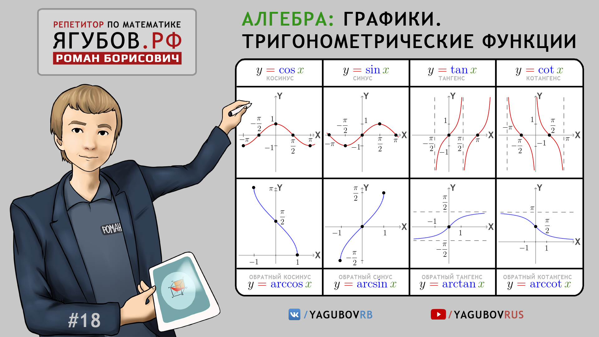 Методическое пособие по Графикам. Тригонометрические функции и их обратные от Ягубов Р.Б. 2017-го года