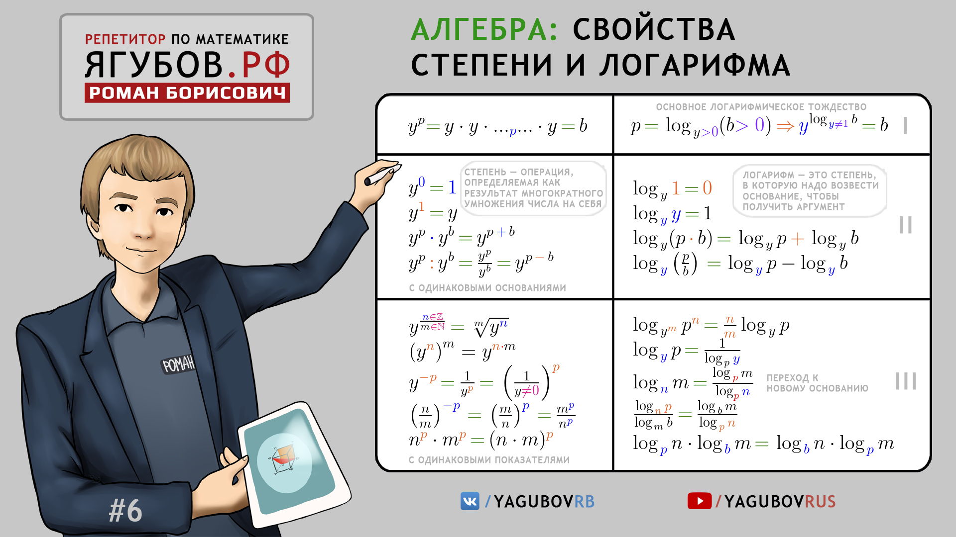 Методическое пособие по Свойствам степени и логарифма от Ягубов Р.Б. 2017-го года