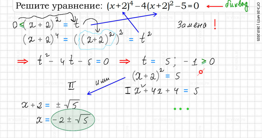 Корень в результате без минуса. Выносить, а не делить! Замена в 4 степени! |