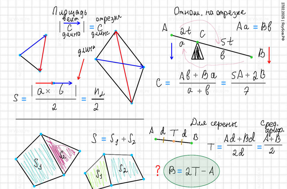 Осталось разобраться с площадью и соотношениями точек на векторе. |