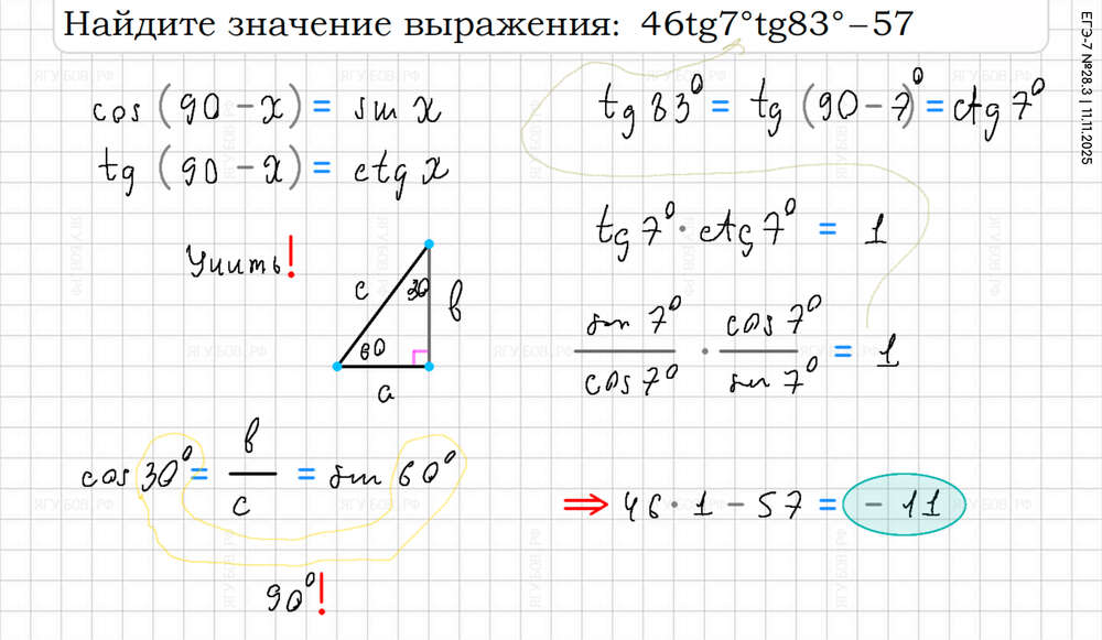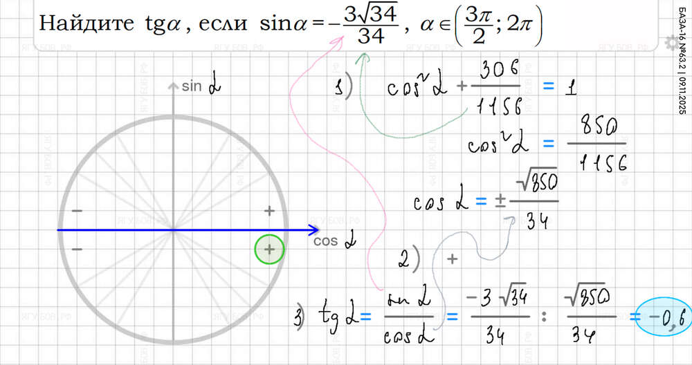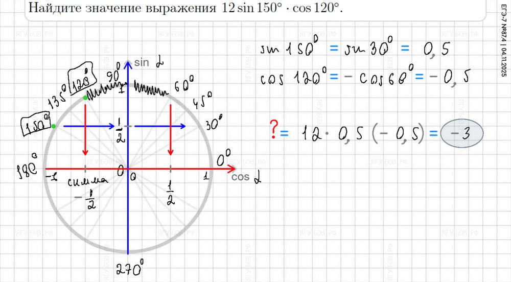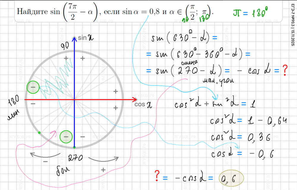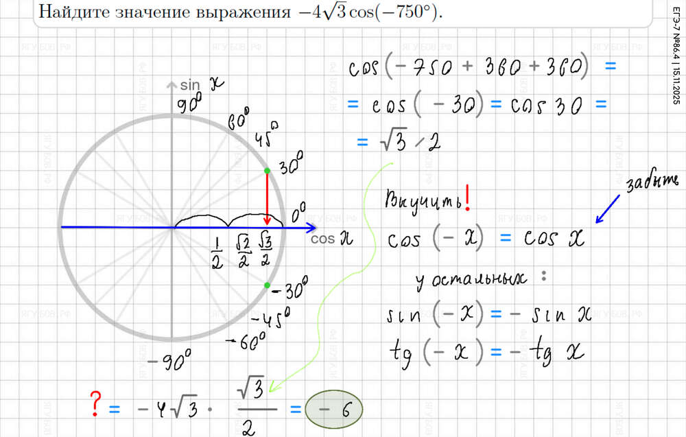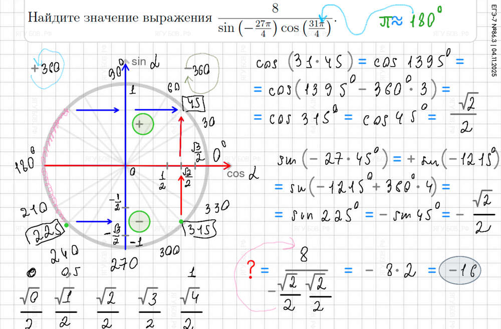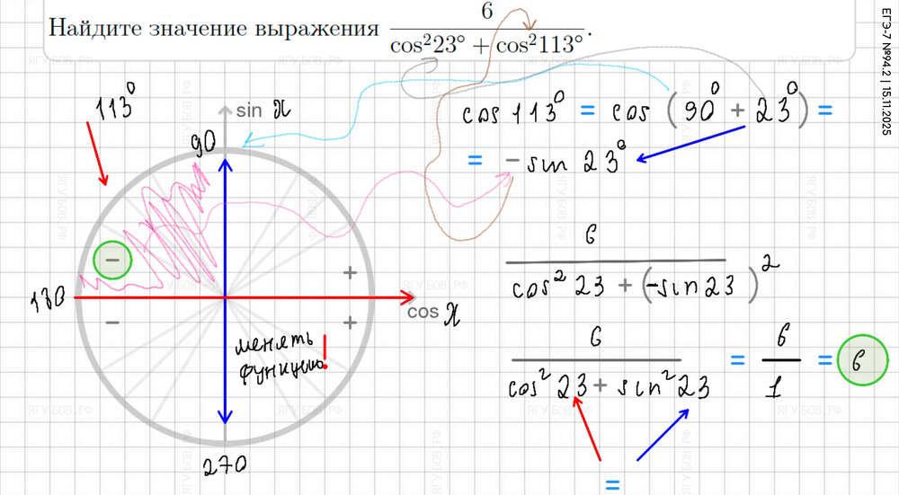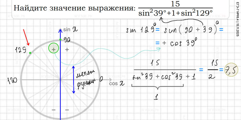 Понять тригонометрический круг (есть в формулах). |