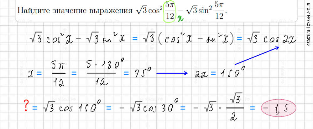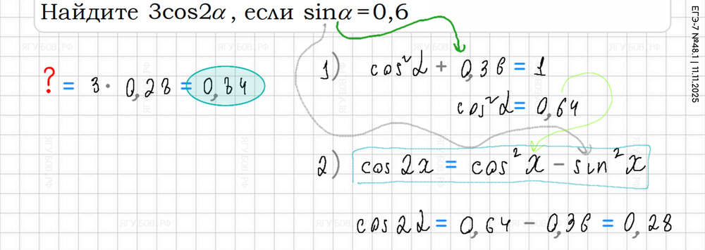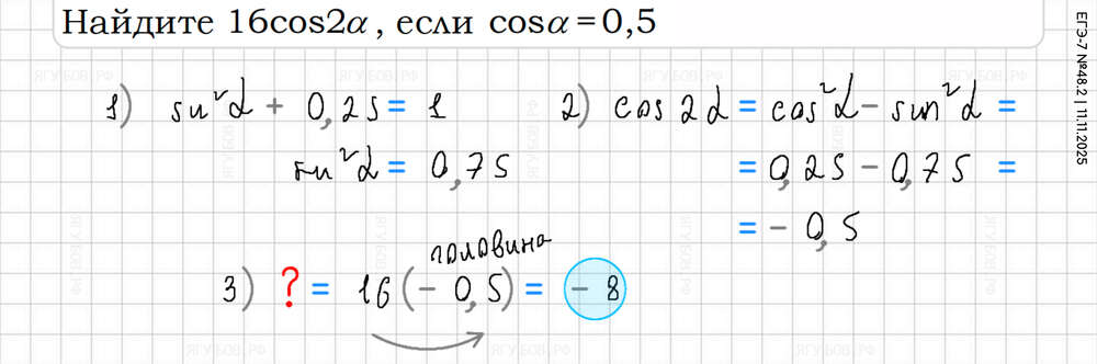 У косинуса двойного угла три формулы! |