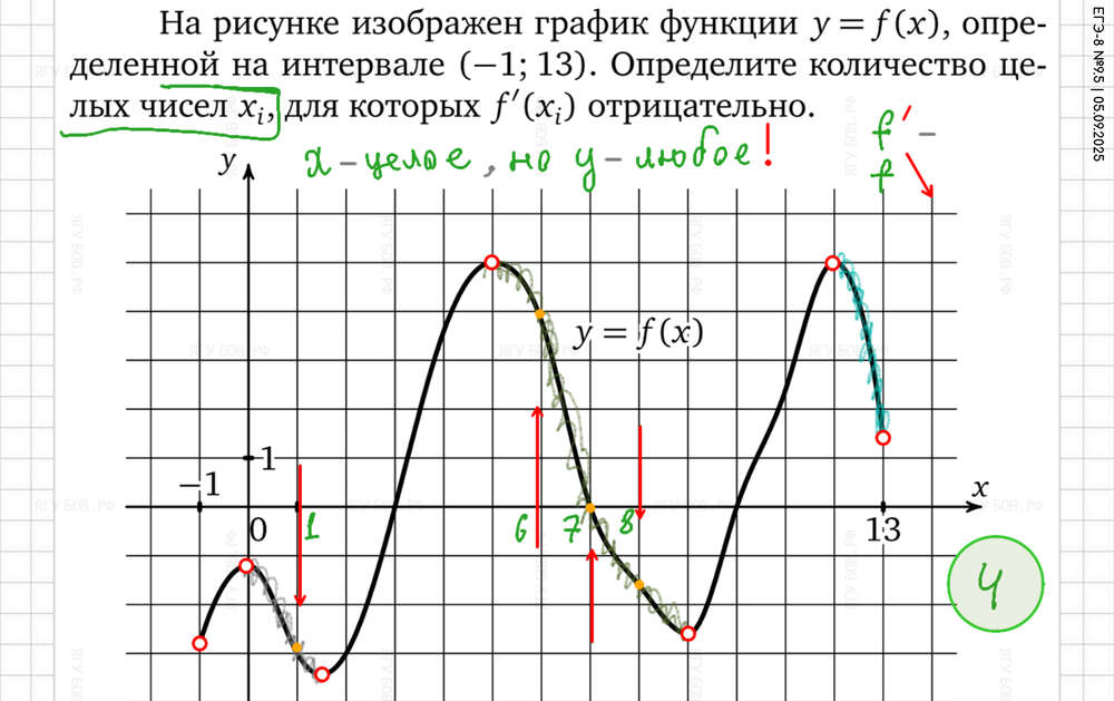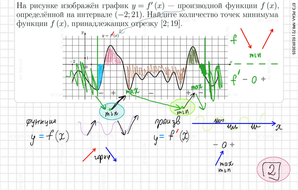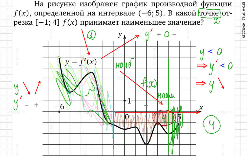 Внимательно смотреть на график (отличать производную от функции). |