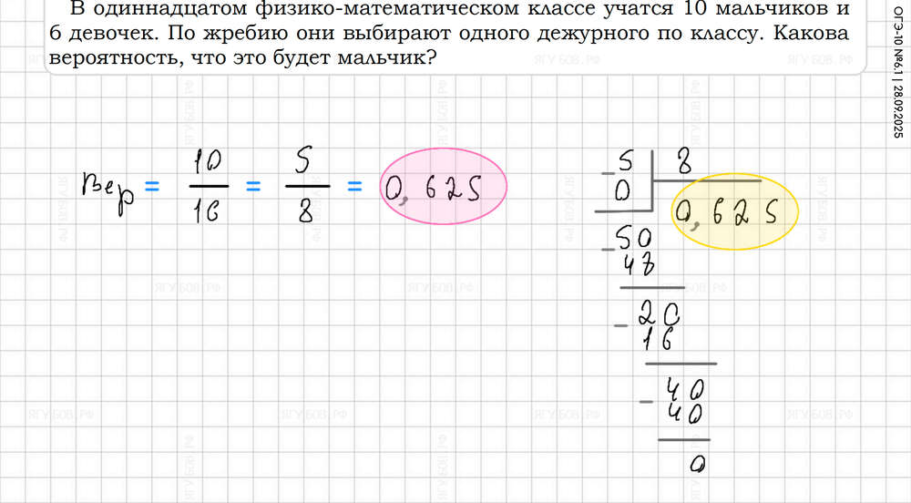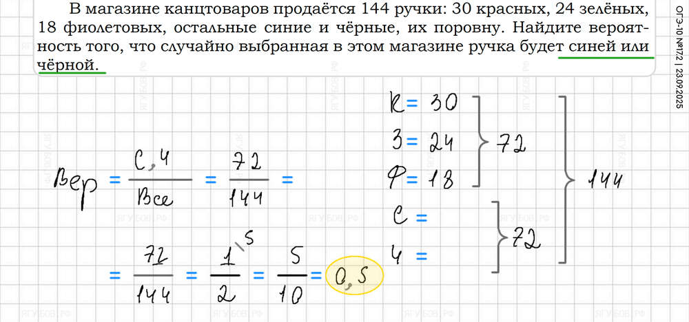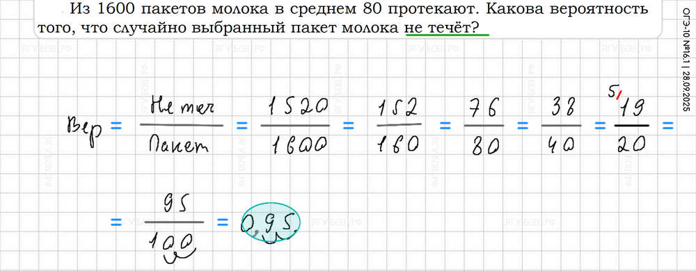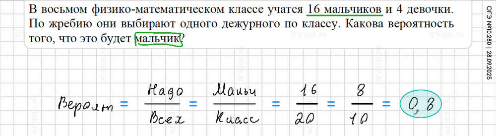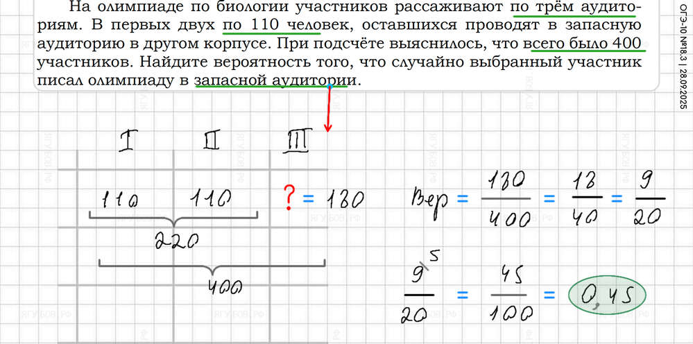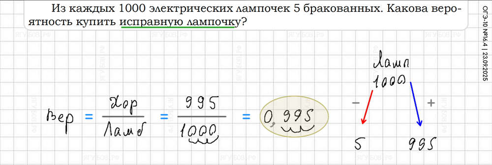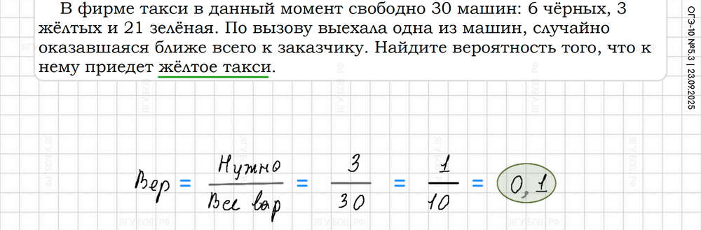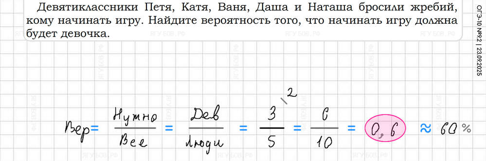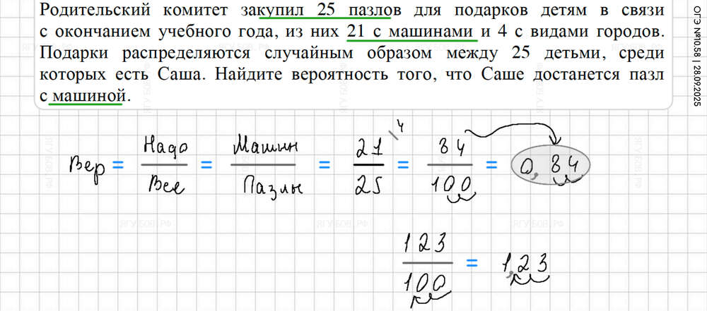 Внизу дроби приводить к 10 100 1000. Вероятность = нужно / всё |
