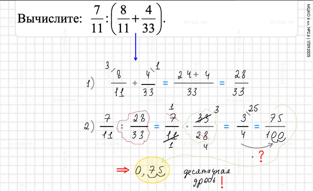 При делении переворачиваем! Не забываем при + / - общий знаменатель! |