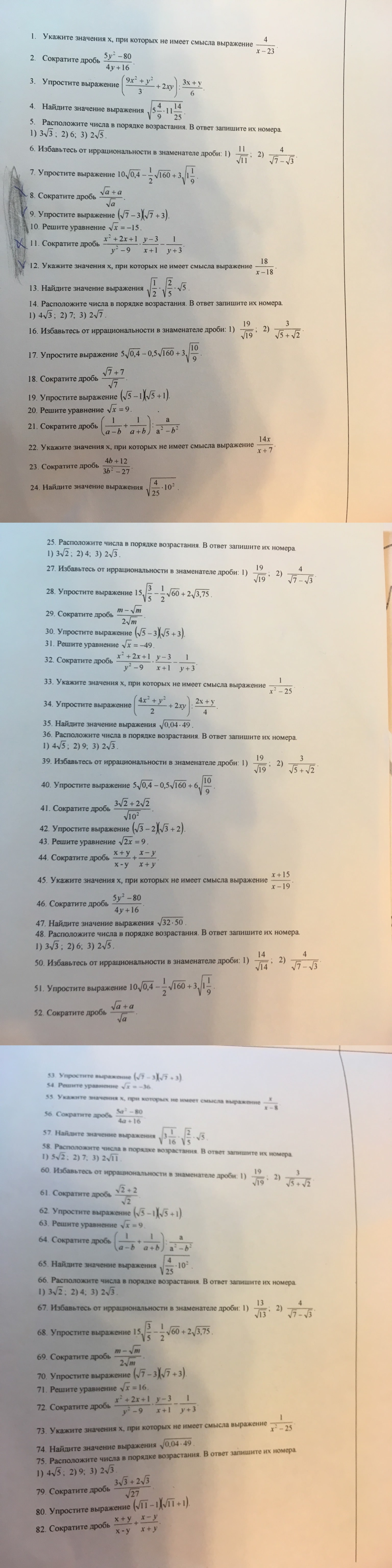 Подготовительная работа по математике (Первое полугодие) для 8-го класса от Лицея 1580 в 2016 году
